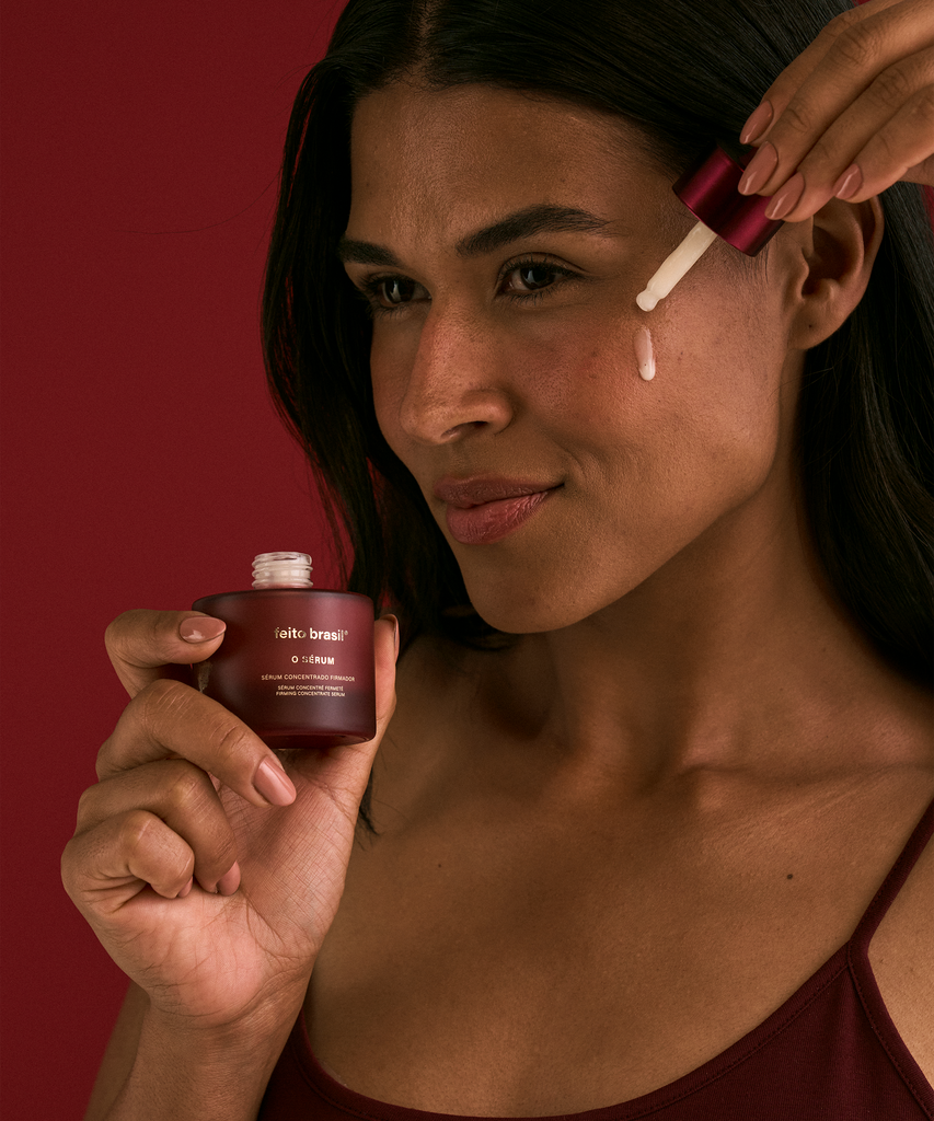 Após a limpeza com o Mousse de Limpeza Tonificante Kamû , aplique algumas gotas do Sérum Concentrado Firmador no rosto e pescoço, espalhando suavemente. Aguarde a absorção dos ativos. Em seguida, utilize uma Bruma Floral Hidratante para refrescar e iluminar. Finalize sempre com protetor solar.