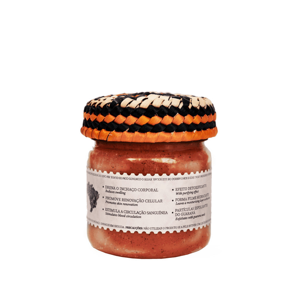 Partículas esfoliantes do Guaraná: fornece uma esfoliação suave, removendo as células mortas da pele e promovendo a renovação celular. A cafeína presente no guaraná tem propriedades estimulantes que podem ajudar a melhorar a circulação sanguínea quando aplicada na pele.