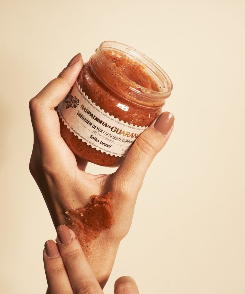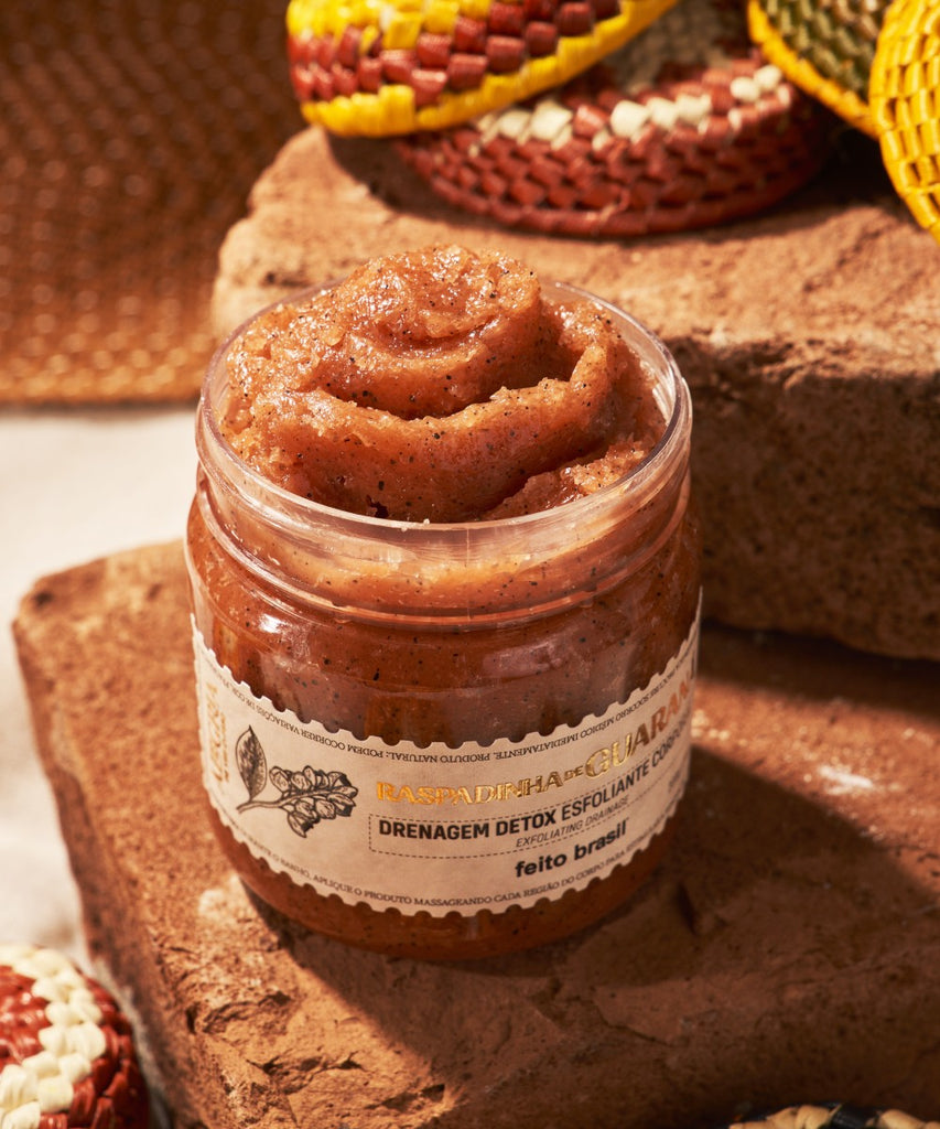 Para um banho renovador! A Raspadinha de Guaraná ameniza o inchaço do corpo, além de restaurar o equilíbrio do organismo, fazendo uma drenagem revigorante e uma esfoliação detox incomparável.