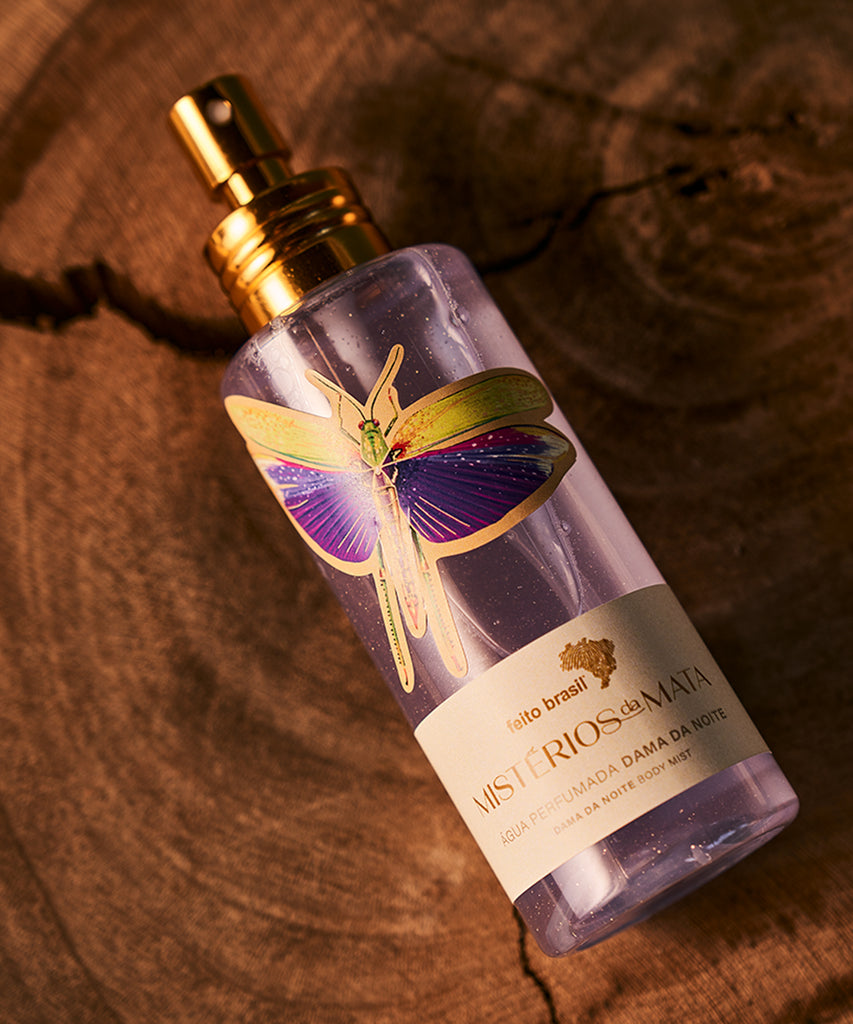 A flor que encanta a todos com sua misteriosa fragrância é a Dama da Noite, que leva o nome da nossa Água Perfumada. Um perfume livre de álcool, com partículas de brilho iluminadoras, que perfuma e hidrata gentilmente a pele.