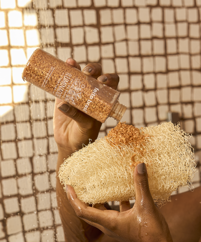 Para um banho renovador e purificante, os Sais de Banho Iluminador possuem aroma exclusivo e brilho mineral biocompatível.  Pode ser usado na banheira para uma imersão renovadora, na bucha para uma esfoliação leve, ou como escalda pés purificante.