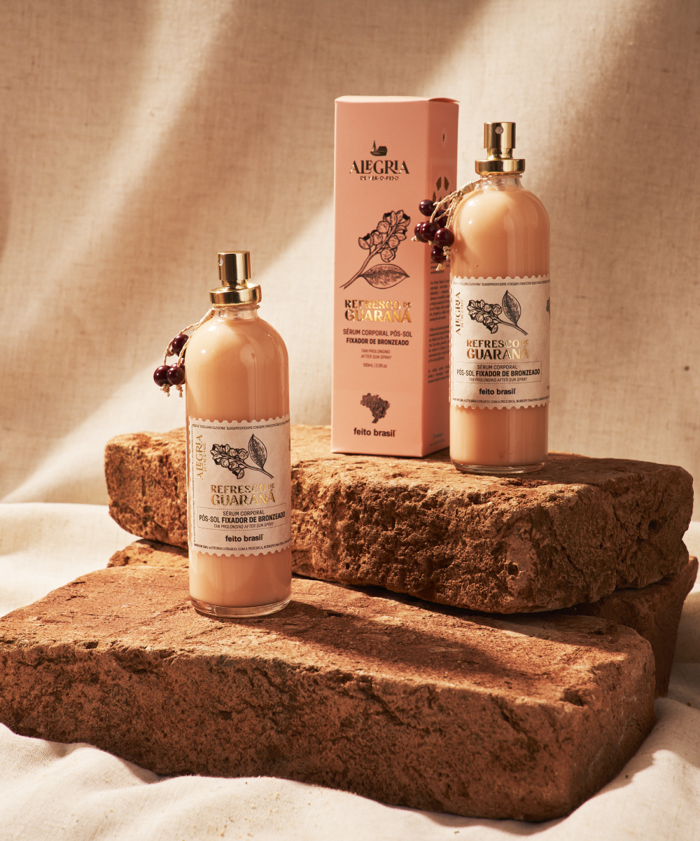 O Refresco de Guaraná conta com Extrato de Alfarroba, responsável por acelerar e prolongar o bronzeado, além de estimular a síntese de colágeno, amenizando os efeitos visíveis do envelhecimento precoce.