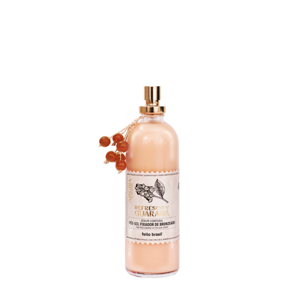Pele bronzeada mais rápido e por mais tempo, sem irritação! O Refresco de Guaraná é um spray que hidrata e acalma a pele exposta ao Sol, além de promover um bronzeado duradouro, sem vermelhidões.